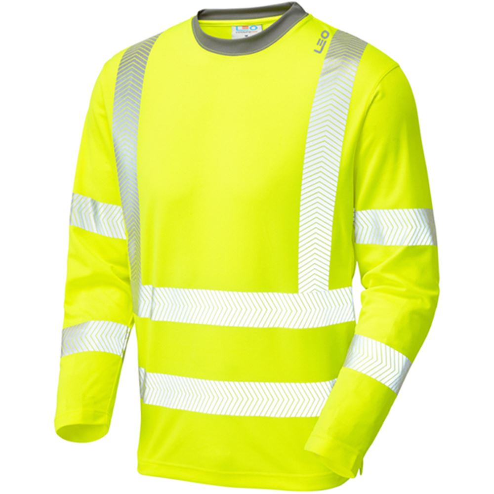 Leo Workwear Capstone Yellow EcoViz Coolviz Plus Long Sleeve Hi Vis T-Shirt