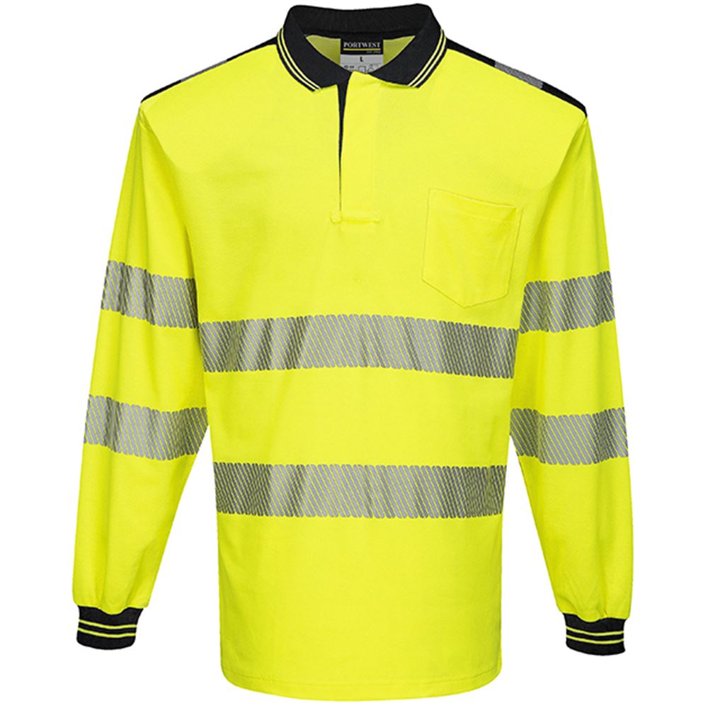 Portwest T184 Yellow/Black PW3 Long Sleeve Hi Vis Polo Shirt