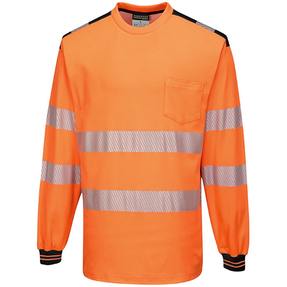 Portwest T185 Orange/Black PW3 Long Sleeve Hi Vis T Shirt