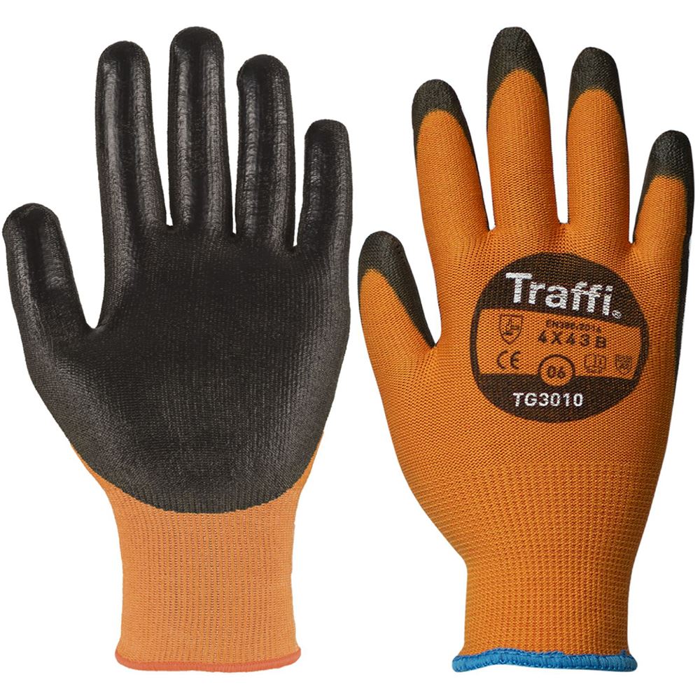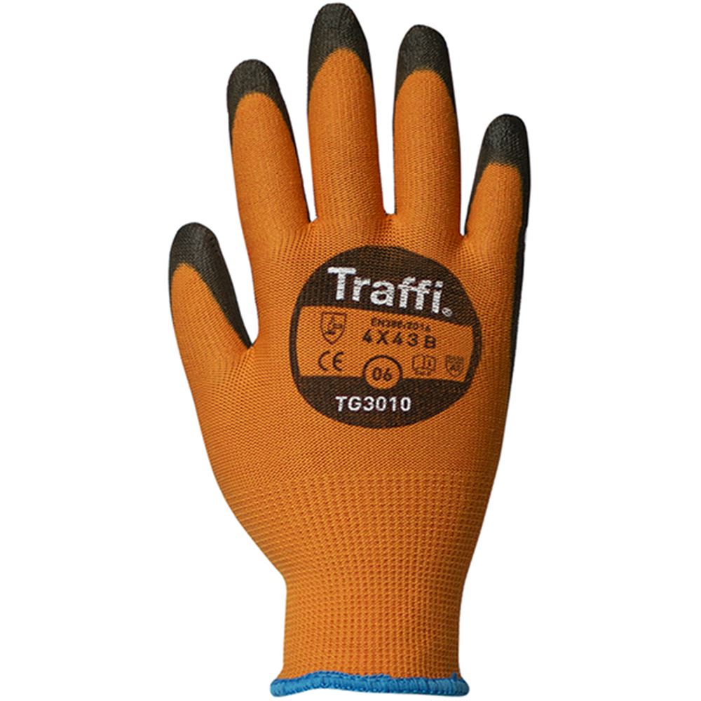 TraffiGlove TG3010 X-Dura Classic Cut B PU Palm Coated Amber Work Gloves - 13g