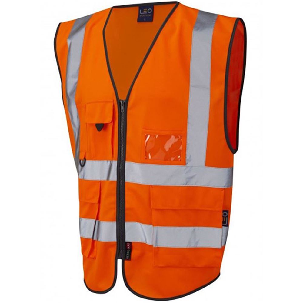 Leo Workwear Lynton Orange Zipped Hi Vis Superior Waistcoat